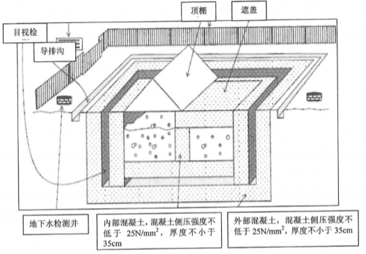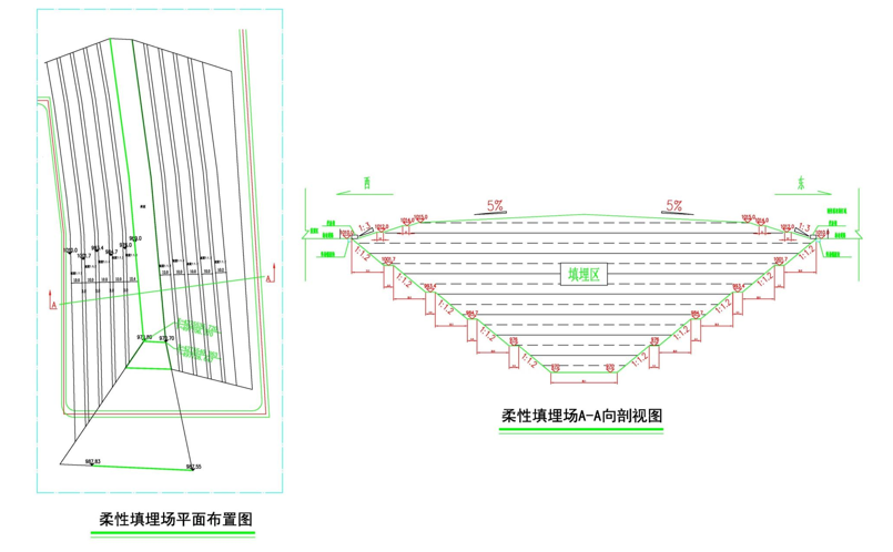 本柔性填埋场采用柔性防渗、开挖深坑及修建围堤结合的方式形成填埋库区的填埋方案。
