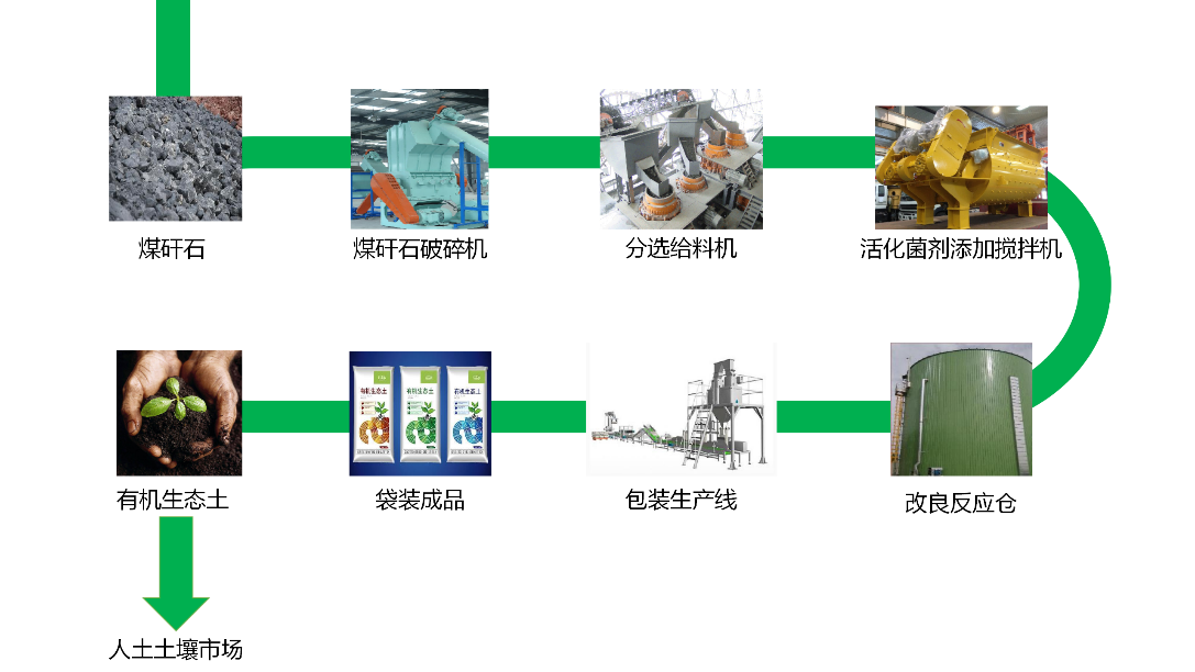 煤矸石制人工土壤技术就是通过对煤矸石的物理结构重塑(破碎、分选、级配等)、有益微量元素的微生物分解活化、有害重金属元素的微生物钝化等科学技术手段,使煤矸石快速还原成土,从而将煤矸石制备成为营养元素丰富、保水性和透气性良好、具有适宜植物生长基础环境的高品质人工土壤。