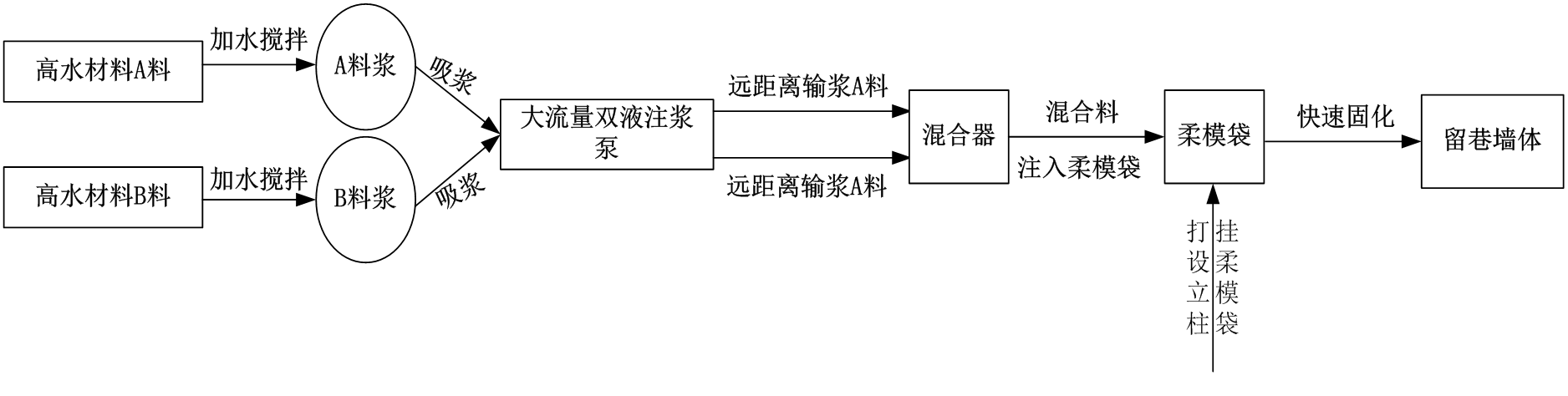 1)沿空留巷巷旁充填。斐傲普高水材料具备速凝、早强特性,材料消耗量小,具备恒阻让压特性,是作为沿空留巷巷旁充填的理想材料。